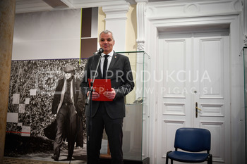 Aleksander Saša Arsenovič, župan MOM, Darko Knez, avtor razstave, Narodni muzej Slovenije, Samo Peter Medved, podžupan MOM