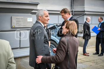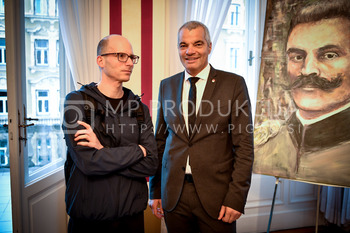 Aleksander Saša Arsenovič, župan MOM, Darko Knez, avtor razstave, Narodni muzej Slovenije, Gregor Golobič, nekdanji generalni sekretar nekdanje LDS