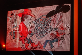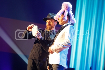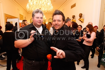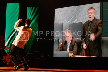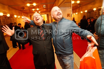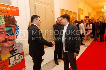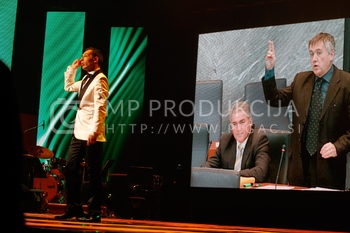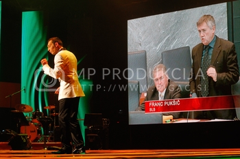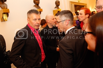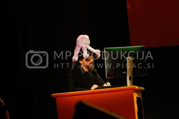 Ciril Horjak, karikaturist časnika Večer, Tadej Toš, povezovalec prireditve Bobu bob 2013, SNG Maribor