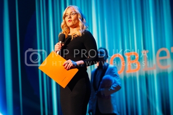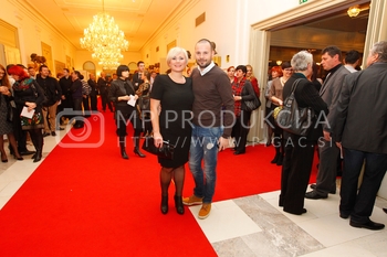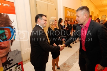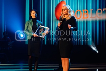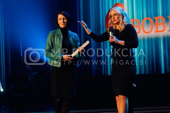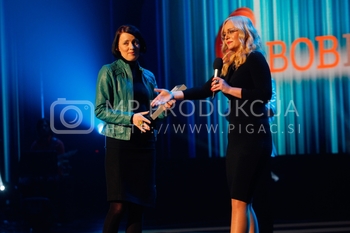 Tadej Toš, povezovalec prireditve Bobu bob 2013, SNG Maribor, Katja Šeruga, glavna urednica časnika Večer