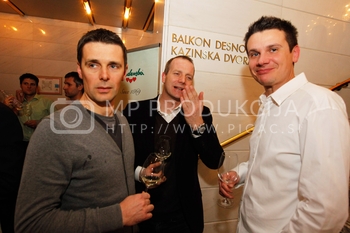 Tadej Toš, povezovalec prireditve Bobu bob 2013, SNG Maribor, Jure Struc, direktor časnika Večer, Mitja Blagajac, vodja marketinga in prodaje pri časniku Večer