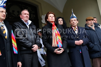 Alenka Bratušek, predsedujoča v stranki Pozitivna Slovenija in predsednica vlade RS, Štefan Čelan, župan Mestne občine Ptuj, Branko Brumen, vodja projekta Kurentovanje 2014, podpredsednik FECC, KarnevalFest – 54. Mednarodna pustna in karnevalska povorka, Kurentovanje Ptuj