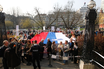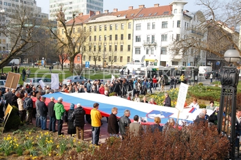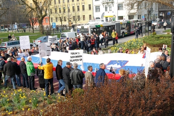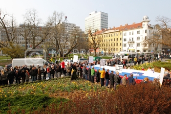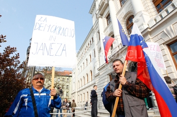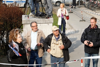 Andrej čuš, poslanec SDS, Roman Leljak, simpatizer SDS, Franc Breznik, poslanec SDS, Vinko Gorenak, poslanec SDS, Protest v podporo Janezu Janši in sojenje na Višjem sodišču v zadevi Patria, Ljubljana