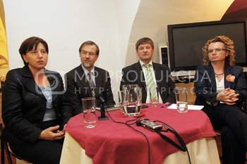 Ljudmila Novak, predsednica NSi, Lojze Peterle, evropski poslanec ELS/NSi, Franc Bogovič, predsednik SLS, Monika Kirbiš Rojs, Predstavitev skupne liste NSi in SLS – Hiša Stare trte Maribor