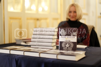 Skozi novi roman ali metafizično kriminalko ‘o hobotnici trinajstih posvečenih, ki v srcu teme štajerske prestolnice obvladuje mesto’, nas je Šteger popeljal v pogovoru z Večerovo novinarko Vanesso Čokl, odlomke iz knjige pa je bral dramski igralec Nenad Tokalič – Nešo.Nenad Nešo Tokalić, dramski igralec, Aleš Šteger: predstavitev knjige Odpusti o Mariboru in hobotnici, Kazinska dvorana, SNG Maribor