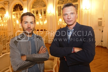 Marko Pigac, direktor Photo // Press // Video Agencije MP Produkcija, Nenad Nešo Tokalić, dramski igralec, Aleš Šteger: predstavitev knjige Odpusti o Mariboru in hobotnici, Kazinska dvorana, SNG Maribor