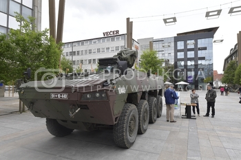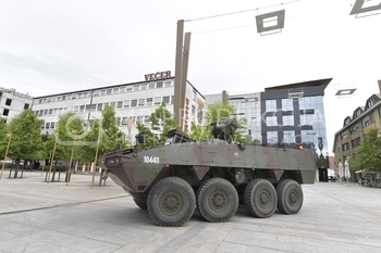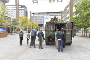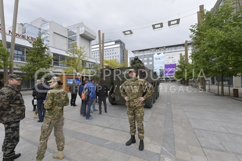 Na Trgu Leona Štuklja v Mariboru so predstavniki Slovenske vojske predstavljali poklic vojaka SV. Na ogled je bil tudi postavljen oklepnik Svarun oz patria.