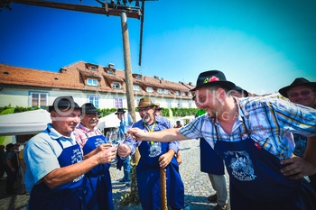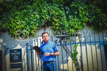 Andrej Borko, pomočnik direktorja Narodnega doma Maribor, Zdravko Luketič, podžupan Mestne občine Maribor, mestni svetnik NSi, Stane Kocutar, nekdanji glavni in odgovorni urednik Radia Maribor, mestni viničar in skrbnik Stare trte, 18. postavljanje klopotca - Hiša Stare trte na Lentu