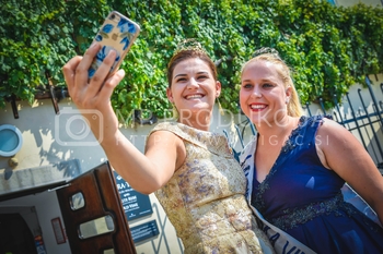 dr. Andrej Fištravec, župan Mestne občine Maribor, Kaja Šerbinek, mariborska vinska kraljica 2016-2018, Katarina Pungračič, 22. vinska kraljica Slovenije, Vinska kraljica Slovenije 2018, 18. postavljanje klopotca - Hiša Stare trte na Lentu