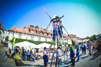 Dejan Baier, organizator prireditve VinDel, Stanislava Klemenčič Kosi, Kmetijsko gozdarski zavod Maribor, 18. postavljanje klopotca - Hiša Stare trte na Lentu