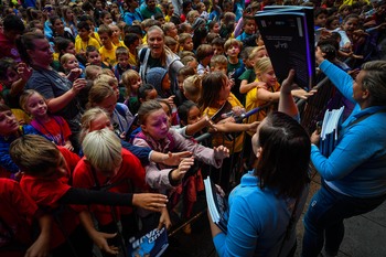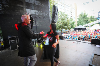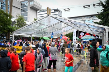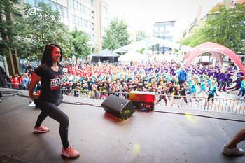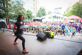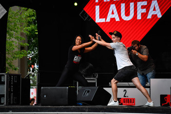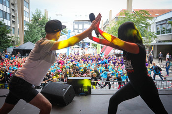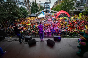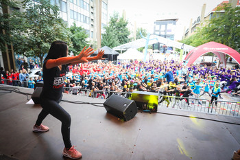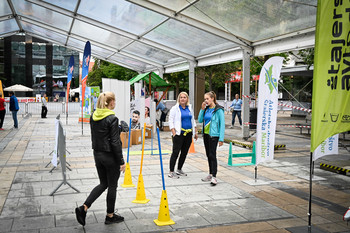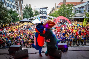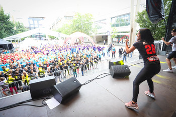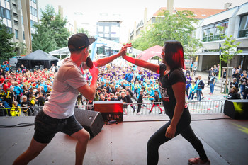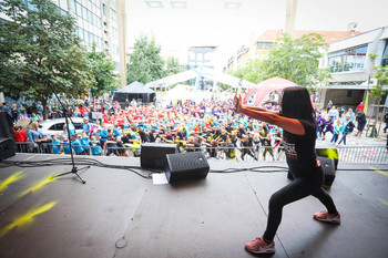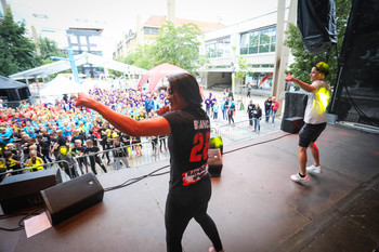 Na Trgu Leona Štuklja se predstavljajo športna društva, sponzorji. Na osrednjem odru pa potekajo razgibalne vaje in podelitve priznanj najboljšim tekačem. Osrednji dogodek je bil nastop reperja Challeta Salleta.