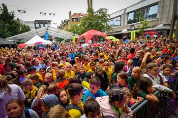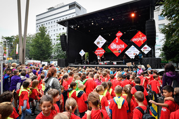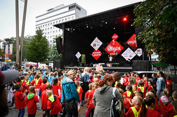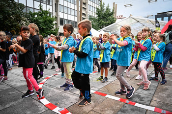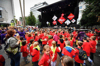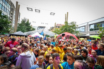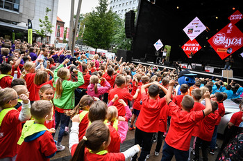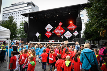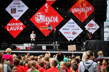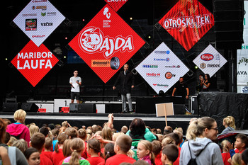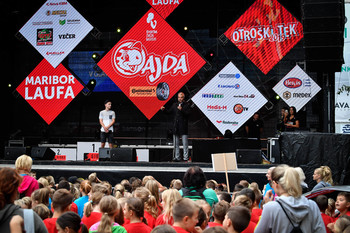 4. Mariborski mestni tek - Ajdin otroški tek - dogajanje na trgu in koncert Challe Salle