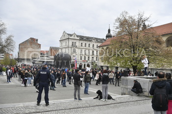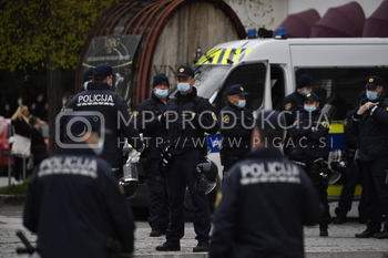 Policija PU Maribor, izvaja postopek identifikacije protestnikov, Protest proti ukrepom vlade Republike Slovenije - Trg svobode Maribor