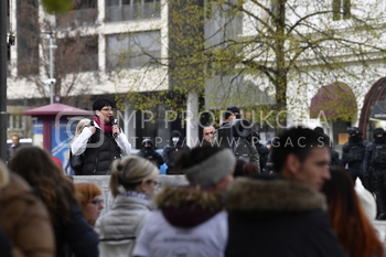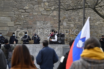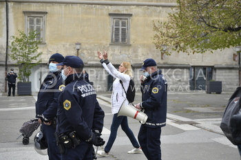 Gordana Bojović Popić, Policija PU Maribor, megafon, Protest proti ukrepom vlade Republike Slovenije - Trg svobode Maribor