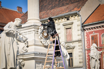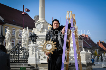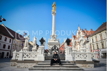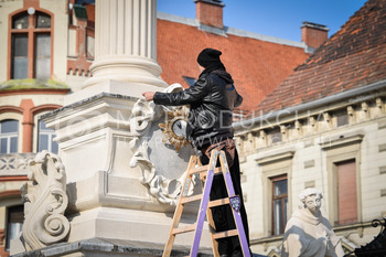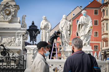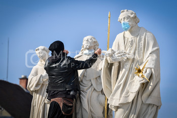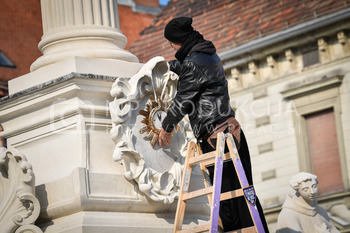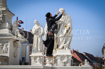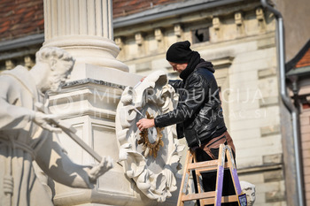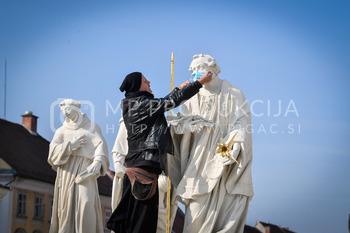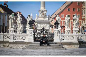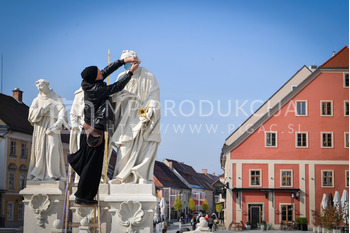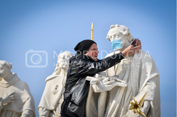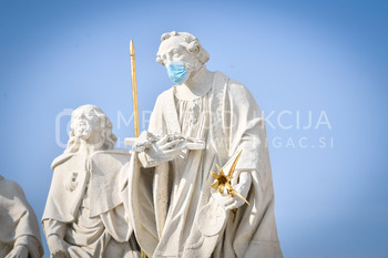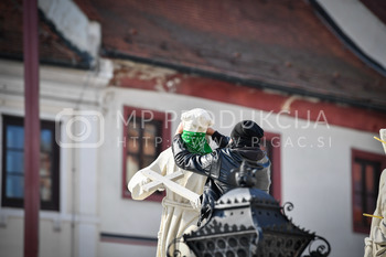 Renato Rene Volker - Inštalacija zaščitnih mask na Kužno znamenje - Glavni trg Maribor