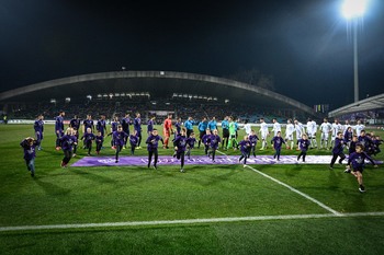 Vijolčni tamali na tekmi 21. kroga PLTS med NK Maribor in NK Olimpija Ljubljana