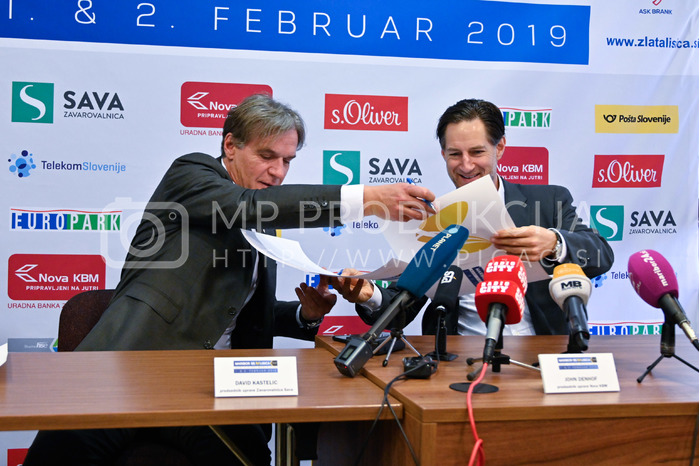 - David Kastelic, predsednik uprave Zavarovalnica Sava, John Denhof, predsednik uprave Nova KBM, 55. Zlata lisica // 55. Golden Fox - Tiskovna konferenca - Hotel Arena Maribor