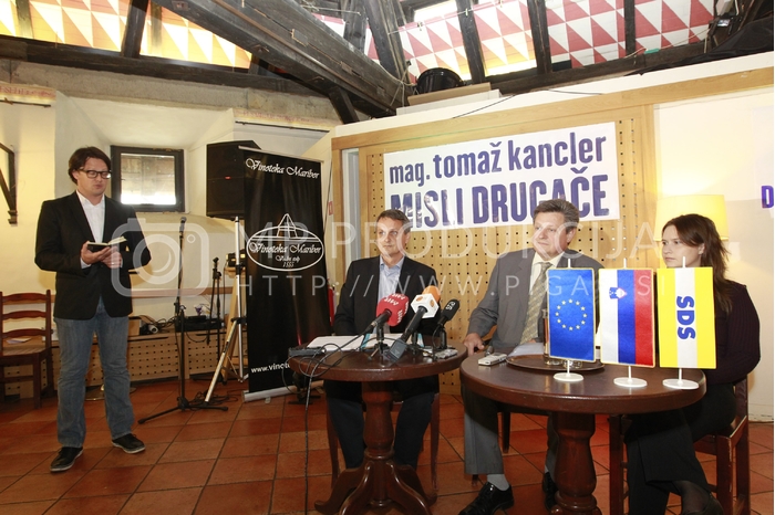 - Boštjan Klun, povezovalec tiskovne konference, Gregor Pivec, predsednik MO SDS Maribor in direktor UKC Maribor, Tomaž Kancler, SDS-jev kandidat za župana Maribora, Katja Medved, članica SDS, Vodni stolp, Lent, Maribor Avtor: MP Produkcija