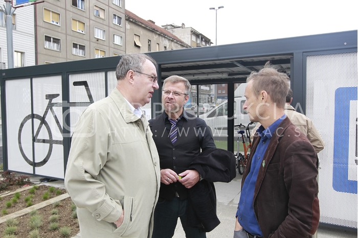 - Vili Eisenhut, direktor Urada za komunalo, promet, okolje in prostor - Mestna občina Maribor, Uroš Kosi, vodja Sektorja za komunalo in promet v Uradu za komunalo, Josip Rotar, predstavnik Mariborske kolesarske mreže in nosilec Liste kolesarjev in pešcev, Kolesodvor, Železniška postaja Maribor Avtor: MP Produkcija