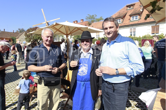 - Jože Protner, častni konzul Republike Avstrije, vinar, mestni svetnik LDS in Koalicije za Maribor, Tomaž Kancler, kandidat stranke SDS za župana Maribora, 28. Trgatev Stare trte – Hiša Stare trte – Lent – Maribor Avtor: MP Produkcija
