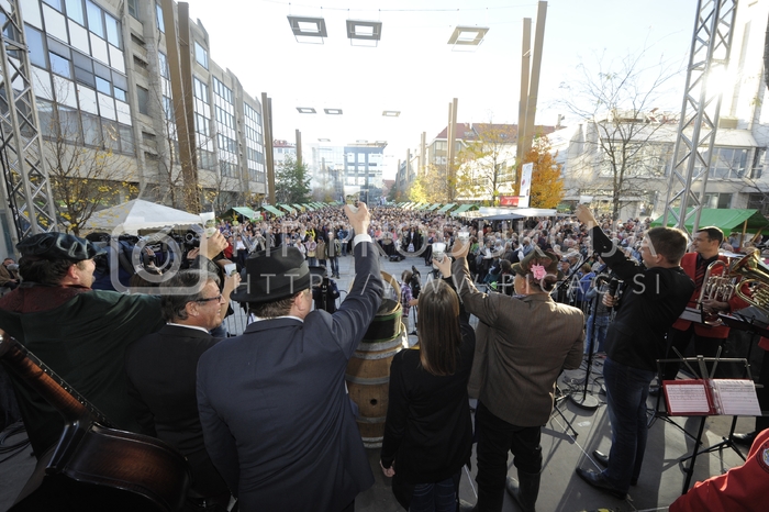 - Urška Bračko, mariborska vinska kraljica 2014-2016, Alojz Jenuš - Slavek, outar in brač iz Malečnika, dr. Andrej Fištravec, župan Mestne občine Maribor, Jože Protner, častni konzul Republike Avstrije, vinar, Robert Levstek, radijski moderator na Radio Maribor, 32. Martinovanje 2015, Trg Leona Štuklja, Maribor Avtor: MP Produkcija