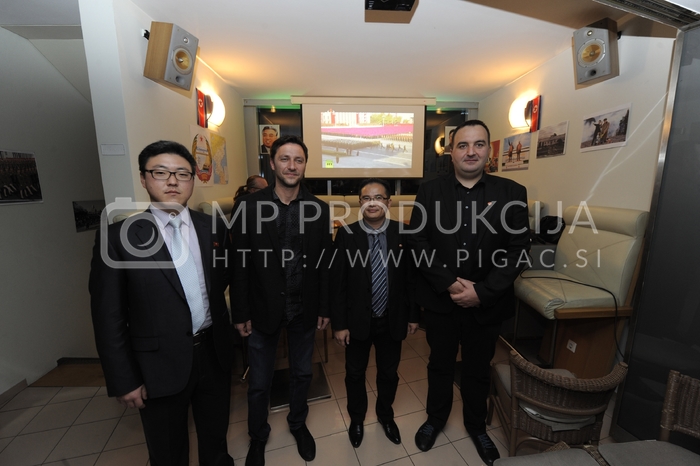 - Kim Chol Jin, sekretar, Veleposlaništvo Demokratične republike Koreje na Dunaju, Boštjan Herženjak, lastnik kavarne Macchiato, Pak Yu Chol, sekretar, Veleposlaništvo Demokratične republike Koreje na Dunaju, Saša Pelko, direktor podjetja Mediasplet, vodja kluba svetnikov Liste župana AF, Severna Koreja je obiskala Maribor – Macchiato Avtor: MP Produkcija