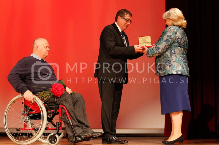 - Alfred Lasetzky, predsednik komisije mestnega sveta za priznanja in nagrade, mestni svetnik Županove liste, dr. Andrej Fištravec, župan Mestne občine Maribor, Marta Otič, prejemnica bronastega grba mesta Maribor Avtor: MP Produkcija