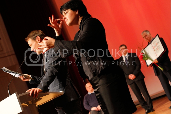 - Saša Krajnc, poveovalec prireditve, Alfred Lasetzky, predsednik komisije mestnega sveta za priznanja in nagrade, mestni svetnik Županove liste, dr. Andrej Fištravec, župan Mestne občine Maribor, Matjaž Mulej, ekonomist, častni občan Maribora Avtor: MP Produkcija