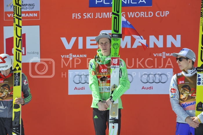 - Peter Prevc, dobitnik velikega kristalnega globusa v skokih za sezono 2015, Johann Andre Forfang, smučarski skakalec, Robert Kranjec, dvakratni zmagovalec SP v poletih 2010 in 2012, svetovni prvak v smučarskih poletih 2012, Veliki finale v smučarskih skokih sezone 2015-2016, Letalnica bratov Gorišek, Planica, Dolina pod Poncami Avtor: MP Produkcija