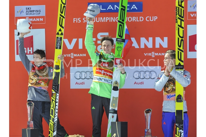 - Robert Kranjec, dvakratni zmagovalec SP v poletih 2010 in 2012, svetovni prvak v smučarskih poletih 2012, Peter Prevc, dobitnik velikega kristalnega globusa v skokih za sezono 2015, Veliki finale v smučarskih skokih sezone 2015-2016, Johann Andre Forfang, smučarski skakalec, Veliki finale v smučarskih skokih sezone 2015-2016, Letalnica bratov Gorišek, Planica, Dolina pod Poncami Avtor: MP Produkcija