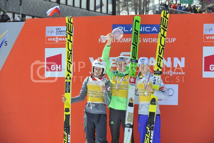- Robert Kranjec, dvakratni zmagovalec SP v poletih 2010 in 2012, svetovni prvak v smučarskih poletih 2012, Peter Prevc, dobitnik velikega kristalnega globusa v skokih za sezono 2015, Johann André Forfang, smučarski skakalec, Veliki finale v smučarskih skokih sezone 2015-2016, Letalnica bratov Gorišek, Planica, Dolina pod Poncami Avtor: MP Produkcija