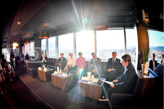 - Boris Popovič, župan Kopra ter kandidat za predsednika republike, Ljudmila Novak, predsednica NSi in kandidatka za predsednico republike, Romana Tomc, evroposlanka EPP in kandidatka za predsednico republike, Maja Makovec Brenčič, ministrica za izobraževanje, znanost in šport ter kandidatka za predsednico republike, Marjan Šarec, župan Kamnika in kandidat za predsednika republike, Borut Pahor, predsednik republike, Matija Stepišnik, glavni urednik časnika Večer Avtor: MP Produkcija