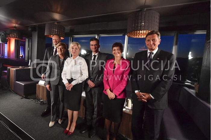 - Boris Popovič, župan Kopra ter kandidat za predsednika republike, Ljudmila Novak, predsednica NSi in kandidatka za predsednico republike, Romana Tomc, evroposlanka EPP in kandidatka za predsednico republike, Maja Makovec Brenčič, ministrica za izobraževanje, znanost in šport ter kandidatka za predsednico republike, Marjan Šarec, župan Kamnika in kandidat za predsednika republike, Borut Pahor, predsednik republike, Avtor: MP Produkcija