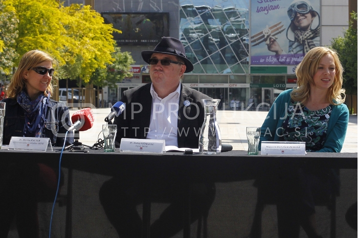 - dr. Martina Rauter, višja svetovalka za mladino, dr. Andrej Fištravec, župan Mestne občine Maribor, Mojca Lubanjšek Pehant, koordinatorka 850 let Maribora, Tiskovna konferenca, 1. Festival Mladi Maribor, Trg Leona Štuklja, Maribor Avtor: MP Produkcija