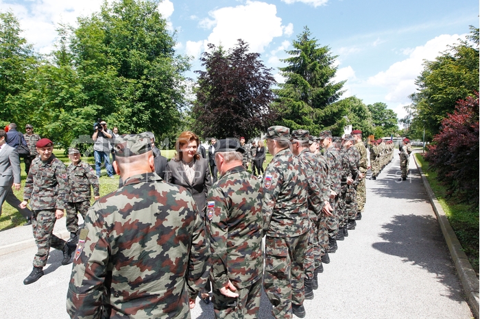 - Roman Jakič, minister za obrambo RS, Alenka Bratušek, predsednica vlade RS, Slovenska vojska, Slovesnost ob vrnitvi zadnjega, 20. kontingenta Slovenske vojske iz Afganistana, Vojašnica generala Maistra, Maribor Avtor: MP Produkcija