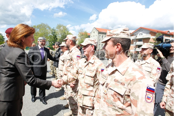 - Roman Jakič, minister za obrambo RS,lenka Bratušek, predsednica vlade RS s kapo specialne enote SV, Slovenska vojska, Slovesnost ob vrnitvi zadnjega, 20. kontingenta Slovenske vojske iz Afganistana, Vojašnica generala Maistra, Maribor Avtor: MP Produkcija