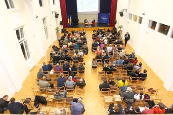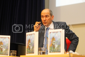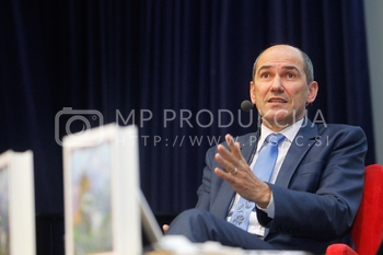 Janez Janša, predsednik SDS, predstavitev knjige Noriško kraljestvo, Beli panter, 1. del, V dvorani Zavoda Antona Martina Slomška na Vrbanski v Mariboru