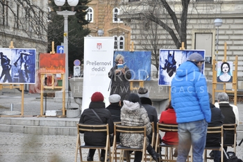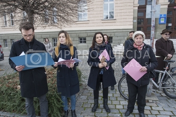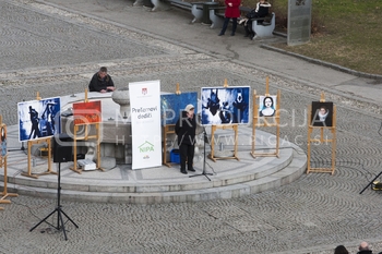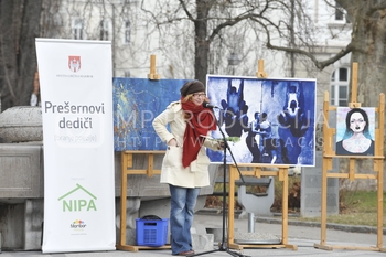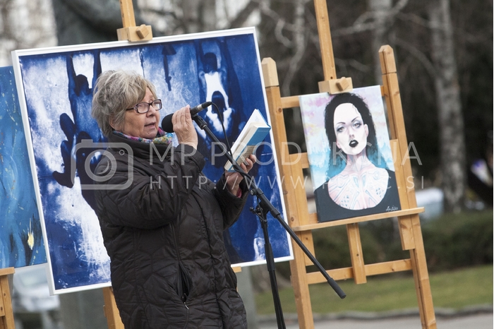 Zdenka Križanič, podpredsednica združenja Koraki za korakce, Prešernovi dediči - Maistrov trg pred I. gimnazijo Maribor