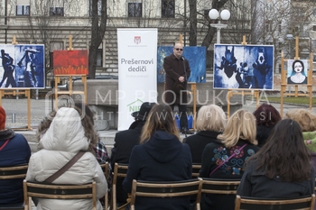 Vlado Novak, prvak drame SNG, prejemnik Borštnikovega prstana 2014, Rado Pavalec, ambasador SNG Maribor 2002, prejemnik Glazerjeve nagrade 2004, Prešernovi dediči - Maistrov trg pred I. gimnazijo Maribor