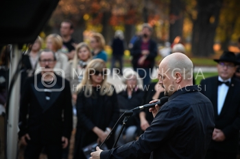 Tomaž Pandur (1963 – 2016), v Mariboru rojeni gledališki režiser, je s svojim opusom zaznamoval ne le slovensko, temveč tudi svetovno gledališko umetnost. Njegova prepoznavna estetika, poetika in svojski gledališki jezik so kot skulpturirani čas odtisnjeni na fotografijah Aljoše Rebolja, ki je z izjemnim občutkom za gledališki trenutek spremljal Pandurja kot ekskluzivni fotograf v zadnjem obdobju ustvarjanja. Fotografije predstav, ki so nastale v Sloveniji, Španiji, Nemčiji, Grčiji in na Hrvaškem (balet Simfonija otožnih pesmi, ljubljanski in madridski Faust, Kralj Lear, Rihard III+II, Michelangelo, madridska in zagrebška Medeja, Vojna in mir, Somrak bogov, Hamlet, Kaligula, Barok, Tesla Electric Company in Infierno) v zadnjih dvanajstih letih pričajo o režiserjevem umetniškem credu, o miselnih in čustvenih pokrajinah njegovih magičnih gledaliških podob.