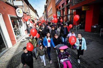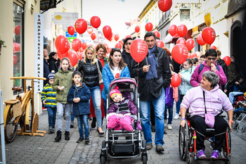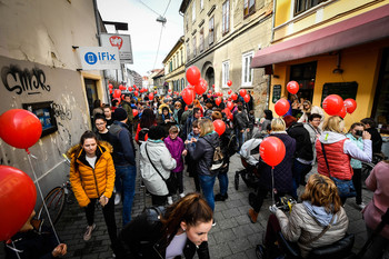 Po ulicah Maribora in po ulicah drugih mest, je danes potekal že tradicionalni, tokrat mednarodni, pohod z rdečimi baloni v organizaciji Zavoda 13, ki ga vodi Petra Greiner. Častni pokrovitelj je bil predsednik republike Borut Pahor, ki se je mariborskega tudi udeležil.