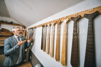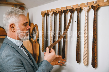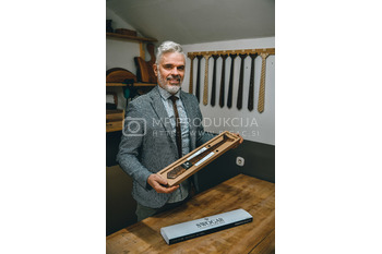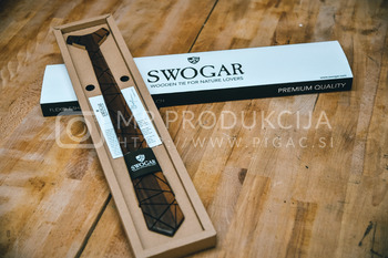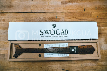 Bojan Ratej je izdelovalec unikatnih umetnin iz lesa. Od lanskega leta razvija blagovno znamko Swogar, ki ponuja dve vrsti kravat. Classic in Trendy. Skupaj 21 različnih vzorcev iz pretežno slovenskega lesa. Bukve, oreha, češnje, hrasta in ameriškega oreha, ki ga uvaža iz BiH, saj je tam temnejši kot tisti vzgajan pri nas. Pravi, da ga masovna produkcija ne zanima, ga pa zanima popolni izdelek, zato so njegove kravate drugačne od drugih. So popolne, tehtajo okoli 80g in v akciji, ki traja še do konca meseca februarja, stanejo okoli 80 evrov.