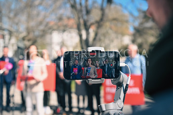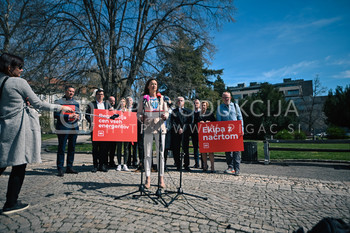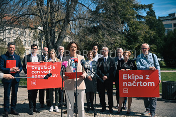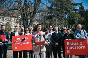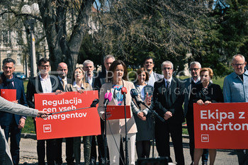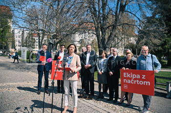 Tanja Fajon, predsednica SD in ekipa kandidatov za poslance SD - predstavitev predlogov za reševanje krize - Trg generala Maistra Maribor