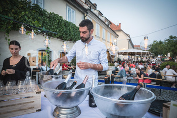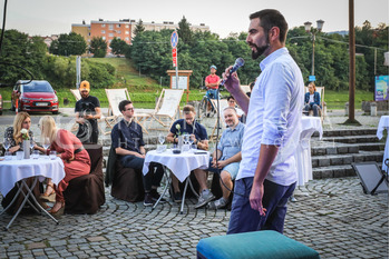 Vinski večer pred Hišo Starte trte na Lentu v Mariboru je potekal ob vrhunskem naboru klasičnih in aktualnih Pat Nat penin. Igrala sta Pupa in Denis.