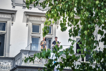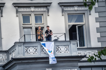 Balkon Poštna ulica: Gašper Drev, kitara; Maj Husar, bas