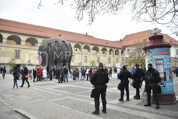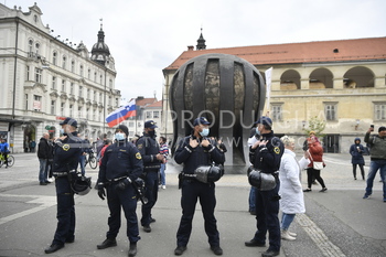 Policija PU Maribor, izvaja postopek identifikacije protestnikov, Protest proti ukrepom vlade Republike Slovenije - Trg svobode Maribor