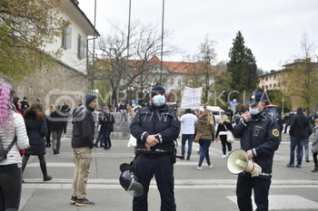 Gordana Bojović Popić, Policija PU Maribor, megafon, Protest proti ukrepom vlade Republike Slovenije - Trg svobode Maribor