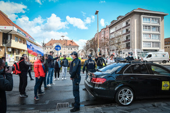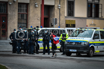 Policijsko vozilo, marica kareta, Protest proti ukrepom vlade Republike Slovenije - Glavni trg MariborProtest proti ukrepom vlade Republike Slovenije - Glavni trg Maribor