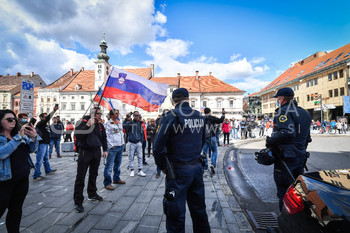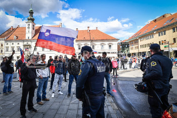 Policija PU Maribor izvaja postopek identifikacije protestnikov, Vlado Čehić, major Štajerske varde, Protest proti ukrepom vlade Republike Slovenije, Glavni trg Maribor