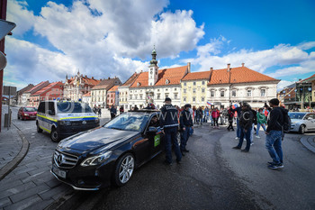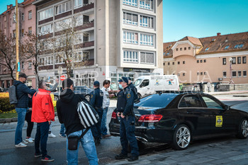 Policija PU Maribor izvaja postopek identifikacije protestnikov, taksist, taksi vozilo, Vlado Čehić, major Štajerske varde, Protest proti ukrepom vlade Republike Slovenije, Glavni trg Maribor